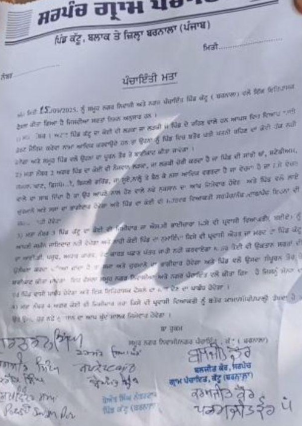 ਬਰਨਾਲਾ ਜ਼ਿਲ੍ਹੇ ਦੇ ਕੱਟੂ ਪਿੰਡ ਵਿੱਚ ਪਰਵਾਸੀਆਂ ਖ਼ਿਲਾਫ਼ ਵਧ ਰਹੀ ਨਾਰਾਜ਼ਗੀ ਨੇ ਨਵਾਂ ਮੋੜ ਲੈ ਲਿਆ ਹੈ। ਪਿੰਡ ਦੀ ਗ੍ਰਾਮ ਪੰਚਾਇਤ ਵੱਲੋਂ ਇੱਕ ਵੱਡੇ ਇਕੱਠ ਵਿੱਚ ਪਿੰਡ ਵਾਸੀਆਂ ਦੀ ਸਹਿਮਤੀ ਨਾਲ ਪਰਵਾਸੀਆਂ ਦੇ ਪੂਰਨ ਬਾਈਕਾਟ ਦਾ ਮਤਾ ਪਾਸ ਕੀਤਾ ਗਿਆ ਹੈ। ਇਸ ਮੀਟਿੰਗ ਵਿੱਚ ਪਿੰਡ ਸਰਪੰਚ ਦੇ ਪਤੀ ਕਰਨੈਲ ਸਿੰਘ ਸਮੇਤ ਕਈ ਪੰਚਾਇਤੀ ਮੈਂਬਰ ਅਤੇ ਵੱਡੀ ਗਿਣਤੀ ਵਿੱਚ ਪਿੰਡ ਵਾਸੀ ਸ਼ਾਮਲ ਹੋਏ।